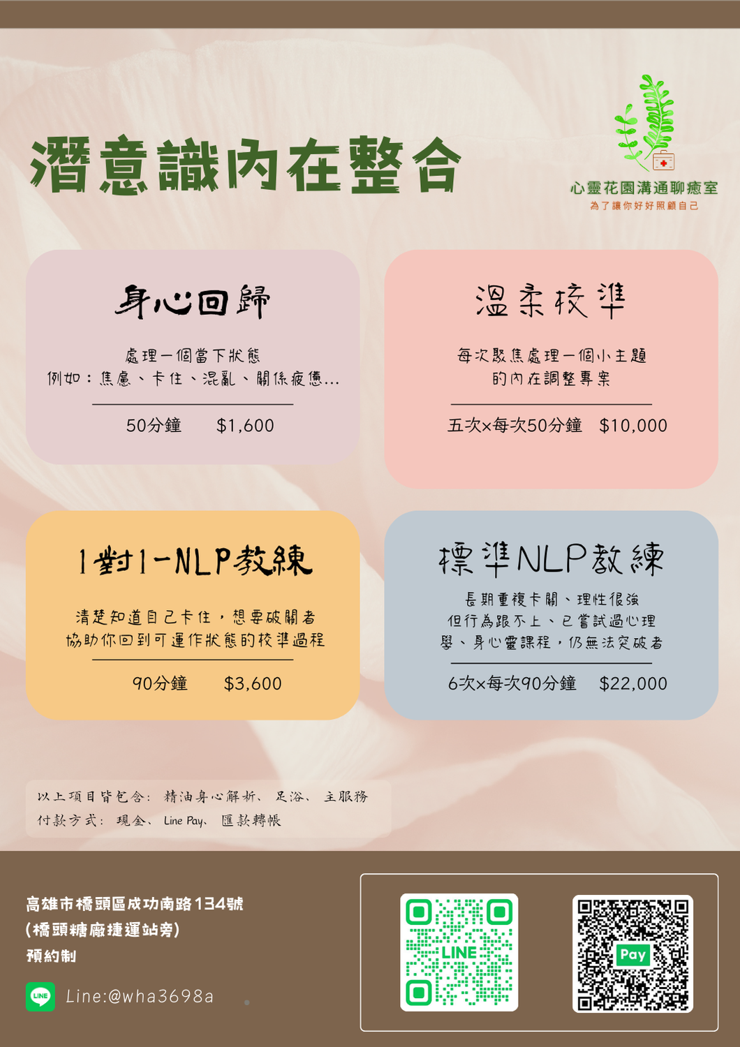 使用NLP 潛意識引導工具,調整內在狀態,使個案從負向調整為正向狀態